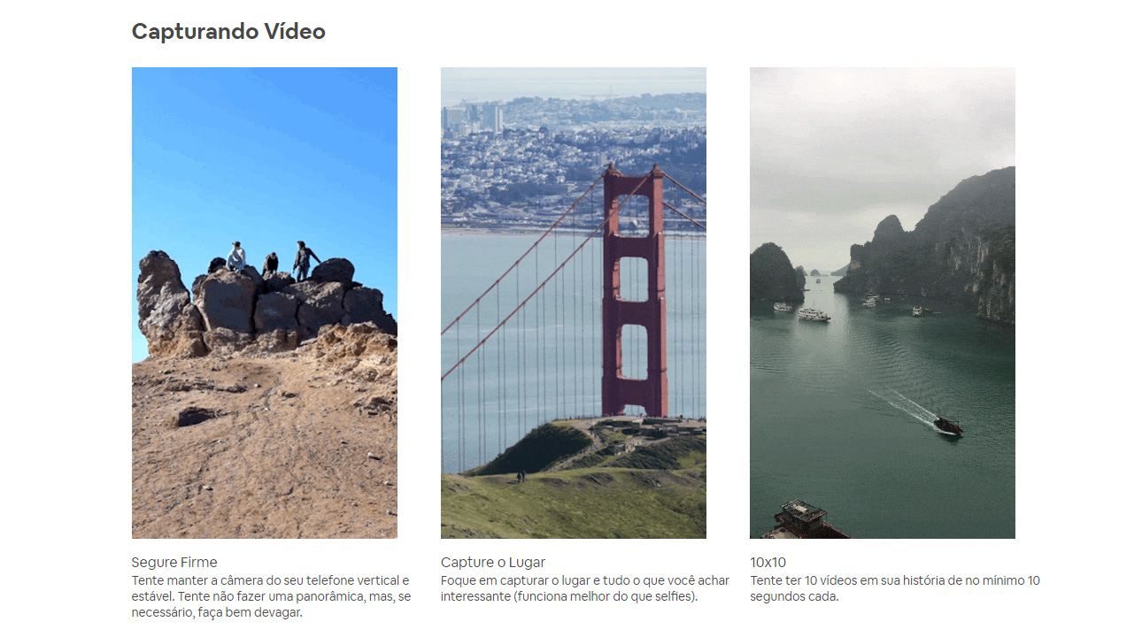 Alguns usuários betas receberam uma novidade do Airbnb na última semana. Segundo o TechCrunch, um do seus leitores reportou a atualização como um registro em vídeo muito parecido com o Stories do Instagram (ou, claro, o Snapchat). A nova ferramenta permite registrar a viagem com vídeos de dez segundos, que podem ser editados através do aplicativo. Aparentemente, depois de upadas, as imagens são vinculadas aos locais e acomodações relacionadas.