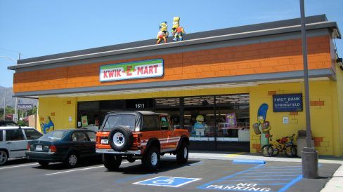 Como uma espécie de product placement inverso, as populares conveniências foram transformadas em Kwik-E-Mart, a loja do Apu na série animada. Além da decoração, produtos que só existem no desenho também estão na loja, como Squishee, refrigerante Buzz Cola, os cereais KrustyO e a HQ Homem Radioativo #71.