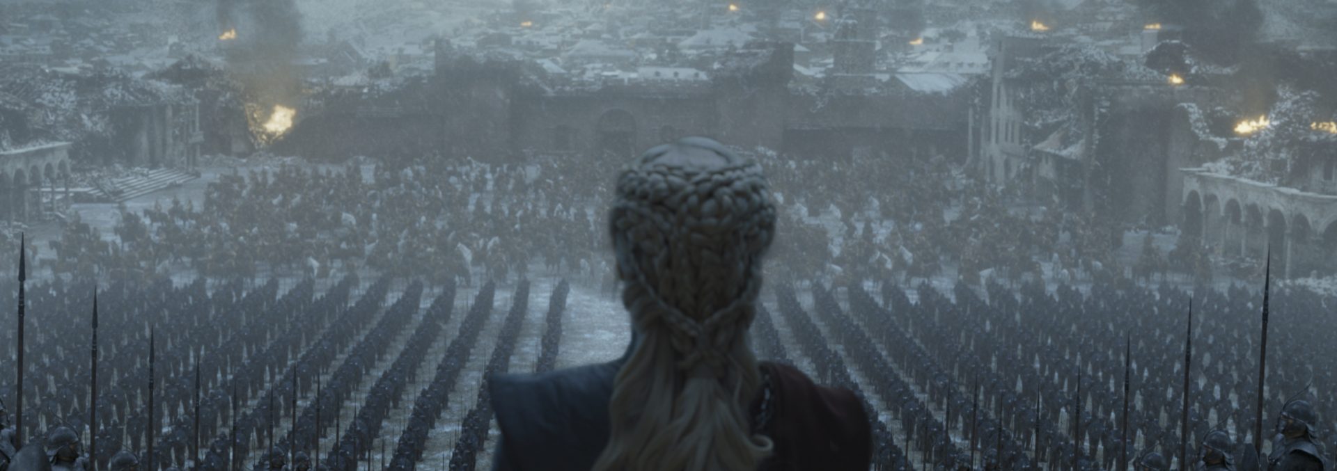 É de “Breaking Bad”, porém, que vem o elemento que mais eleva “Game of Thrones” a um patamar inédito na televisão. Embora nem de longe a série escrita por Benioff e Weiss se aproxime da narrativa lenta e essencialmente visual feita por Vince Gilligan, a série foi quem mais se preocupou em levar a estética cinematográfica às telas de televisão. Grandes locações, centenas de figurantes e auxiliares de produção, grandes efeitos digitais para engrandecer cenários e construir monstros e exércitos… em “Game of Thrones”, havia tudo que era necessário para se fazer um verdadeiro épico fantástico na telinha.