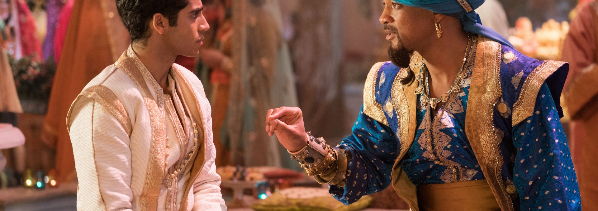 A medida tem seus altos e baixos. Se por um lado ela revigora as canções de maior energia (como “Arabian Nights” e “Prince Ali”, duas cujo valor de espetáculo sonoro é bem alto), em outras que requerem maior compasso o batidão chega a ficar deslocado na lógica do momento – a nova versão de “A Whole New World”, por exemplo, é praticamente destituída de significado ao trocar a intimidade pela cacofonia. Mais intrigante, porém, é observar o posicionamento de “Speechless” dentro da narrativa, já que a canção em teoria é a grande adição do remake à história e portanto possui uma origem distinta das outras, algo que nas mãos erradas só ressaltaria o grau de costura por trás da produção.