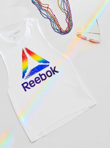 Em homenagem ao Mês do Orgulho LGBT+, a Reebok lançou uma coleção com peças que trazem uma versão especial do seu logo delta nas cores do arco-íris.