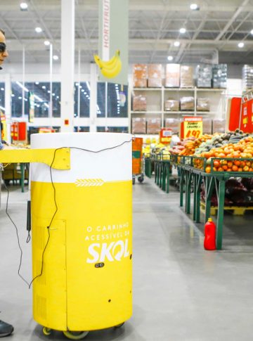 Skol testa carrinho de compras que ajuda pessoas com deficiência visual