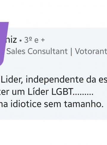 O comentário feito pelo funcionário demitido reprova exatamente a possibilidade de espaço para a comunidade LGBT+ nesses cargos: “Líder é líder, independente da escolha sexual. Agora ter um líder LGBT… É de uma idiotice sem tamanho”, escreveu o homem que trabalhava na empresa há apenas seis meses.