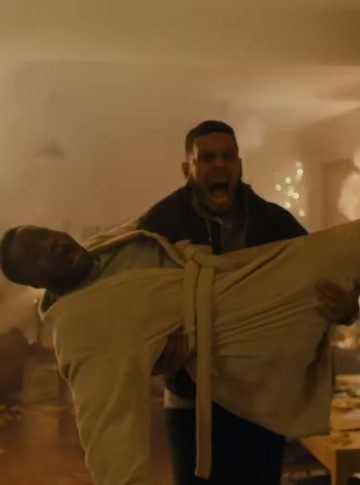 Um homem sobe desesperado as escadas de um prédio, gritando pelo amigo que aparentemente está em algum tipo de apuros. Ao chegar no apartamento do colega, ele descobre o amigo estirado no chão, de robe e encostado no pufe, pronto para começar a próxima maratona de série no sábado a noite – ele até já colocou suas “calças confortáveis”. Mas o homem não desiste, levantando o amigo e, como num filme de guerra, carrega-o em meio a explosões e obstáculos em direção ao grupo de amigos.