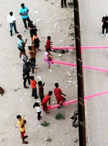 Artistas instalam gangorra na fronteira EUA-México para crianças dos dois países brincarem juntas