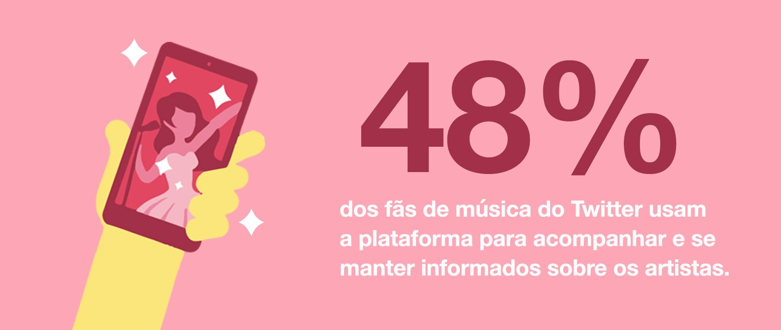 De acordo com um estudo da Music 360 encomendado pelo Twitter, cerca de 42% dos fãs de música afirmam que seus amigos constantemente entram em contato para pedir dicas de novos artistas, músicas ou shows. E o Twitter é o lugar onde eles mais vão para descobrir os próximos hits: 48% dos usuários declararam que usam a plataforma para se manter informados sobre os artistas que gostam. Além disso, 45% dos usuários que se identificam com algum fandom declararam ter interesse em gastar mais com música.