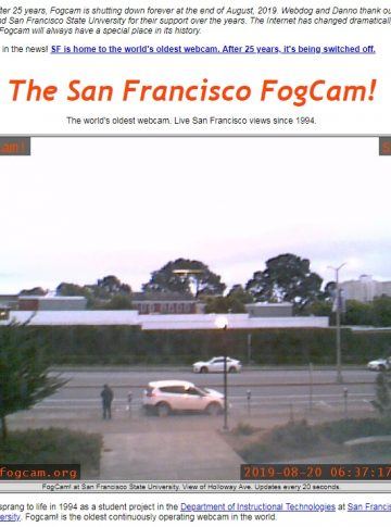 Em 1994, os então estudantes da Universidade Estadual de San Francisco Jeff Schwartz e Dan Wong instalaram uma webcam no campus da universidade para possibilitar a qualquer estudante a oportunidade de monitorar pela internet as movimentações climáticas – em especial a tradicional neblina da cidade – nas imediações da instituição, ficando atualizado com a situação de 20 em 20 segundos. Desde então, o site do projeto se manteve quase que constantemente em dia e ganhou até um nome entre seus “seguidores” fiéis: “FogCam”, a câmera da neblina.