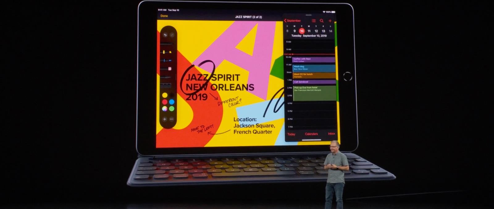 A Apple também exibiu seu novo iPad, que marca a sétima geração do produto e vem com a maior tela que a linha já teve com 10,2” – a tela do modelo anterior era de 9,7″. Outra novidade é que o modelo é feito de alumínio 100% reciclado.