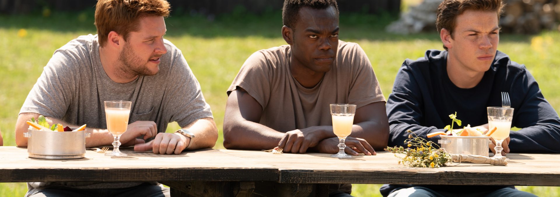 Para isso, “Midsommar” não hesita em apelar não apenas aos longos planos, mas para a própria extensão de tempo com a qual a ação acontece. Com duração de quase duas horas e meia, o filme aproveita bastante de sua premissa ostensivamente diurna para estabelecer um jogo de cartas abertas onde a não hesitação em adiantar ao espectador o caminho da trama não serve de obstáculo à materialização do horror almejado pelo diretor. Além dos retratos espalhados no curso dos acontecimentos (do diagrama que “abre” os trabalhos ao varal com o ritual do amor), essa decisão implica numa narrativa que busca igualar a audiência aos seus protagonistas em questão de conhecimento, mantendo-os pareados enquanto o roteiro desenrola as revelações maiores sobre os hábitos do estranho vilarejo que sedia as festividades do título – o que talvez justifique o porquê de Aster optar por se demorar nos preparativos da viagem, encenando um longo prólogo cujo objetivo parece ser apenas de introduzir a protagonista Dani (Florence Pugh) e sua relação com o namorado Christian (Jack Reynor) e seus amigos (Vilhem Blomgren, William Jackson Harper e Will Poulter).