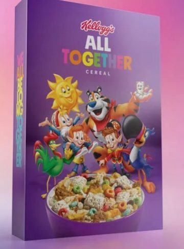 A Kellogg’s está lançando um novo cereal que traz 6 mascotes da marca juntos. A edição limitada de All Together foi pensada para celebrar a inclusão, e é uma ramificação da parceria entre a gigante de cereais baseada e a GLAAD – Gay & Lesbian Alliance Against Defamation – organização não-governamental criada em 1985 e que monitora como a mídia retrata as pessoas LGBT+.