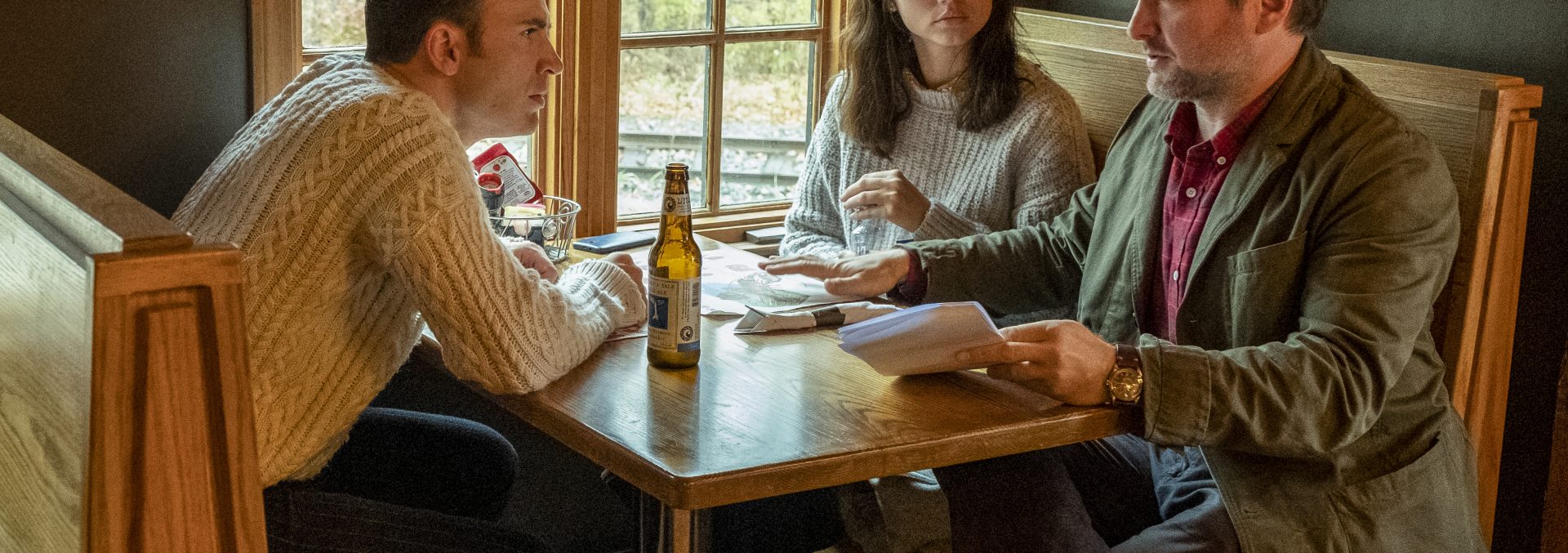 Em vez do roteiro dar cada vez mais profundidade para os membros da família Trombley durante a investigação, a ideia é dar complexidade à protagonista e transformar os burgueses herdeiros de Trombley em caricaturas, algo que o elenco incorpora com maestria principalmente pela forma debochada e infantilizada com a qual Toni Collette e Chris Evans incorporam seus personagens. Johnson inclusive mantém a comédia como uma constante no filme, inserindo o humor em boa parte dos momentos mais dramáticos da narrativa e sempre em pontos definidores dos personagens vividos por Collette, Evans, Jamie Lee Curtis, Michael Shannon e cia.