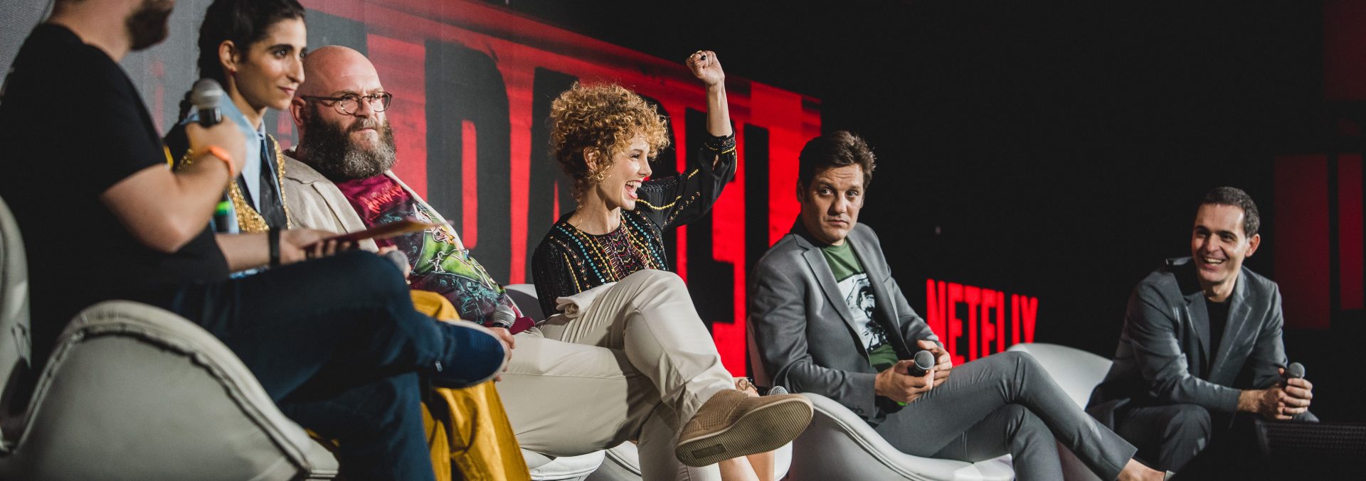 Se o entusiasmo da galera com Cavill já parecia gigantesco, a reação com o elenco de “La Casa de Papel” foi acima de qualquer expectativa. Introduzidos logo após um rápido intervalo e sob auxílio de vários “capangas” vestidos com o uniforme icônico do seriado, Alba Flores, Pedro Alonso, Darko Peric, Esther Acebo e Rodrigo de la Serna foram recebidos como estrelas do rock pelo público do auditório, que não parecia conseguir parar de celebrar a presença dos atores e atrizes ali no espaço. Só para começar a apresentação foram pelo menos cinco minutos de demora – afinal, os aplausos e coro pros artistas não parecia se encerrar nunca, algo que continuou acontecendo ao longo das respostas.