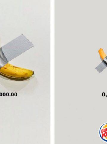 É claro que a situação viralizou, especialmente trazendo o velho debate sobre “o que é arte?” aos holofotes da internet, uma vez que na história toda o que chamou a atenção do público foi o preço da obra. E aproveitando a temática, o Burger King da França fez uma piada colocando uma batata frita colada da mesma forma com fita adesiva, porém, valendo apenas um centavo (de euro).
