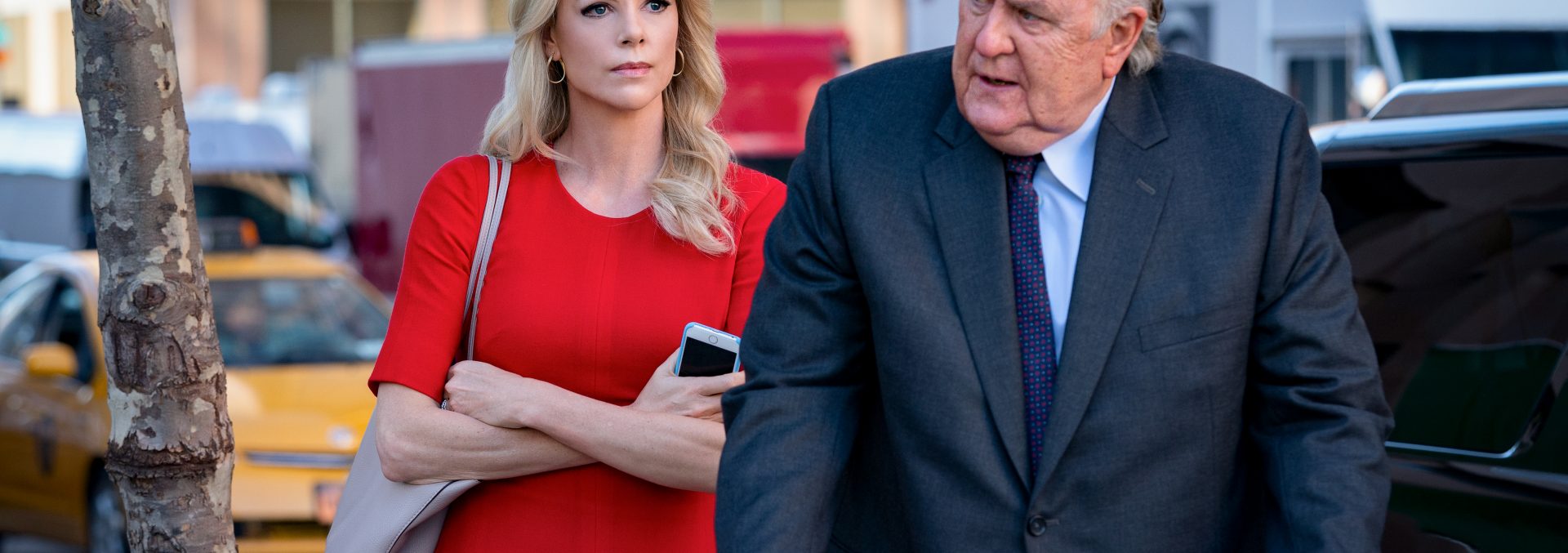 Esta estrutura é toda feita para dar conta de uma narrativa de poder que vê em Ailes o único centro possível da história, e é na forma como as protagonistas se relacionam com o executivo que o filme com naturalidade busca escancarar as situações de abuso que começam a se empilhar dentro da companhia. Como os diálogos não cansam de repetir, “O Escândalo” é todo pautado pelo abuso de poder no mundo corporativo, seja nos assédios e maus tratos do CEO sobre seus empregados à maneira como estes acatam e repercutem este comportamento a seu modo, na cultura de silenciamento e de falta de apoio às vítimas que domina os escritórios da emissora.