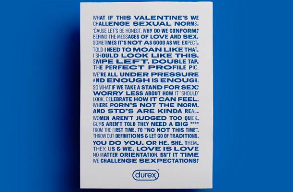 Para resolver esse problema, o chefe de design da Havas London, Lorenzo Fruzza, diz que a equipe trabalhou para posicionar a Durex como uma “marca clara e honesta” que “se comporta como um selo de autenticidade e confiança”.