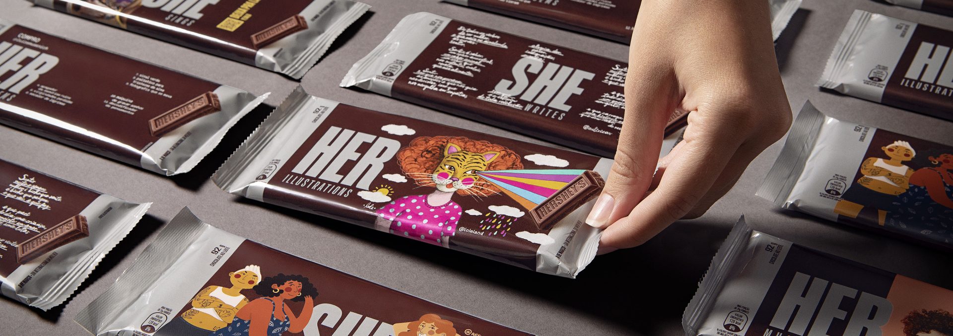 “HerShe”: Hershey’s transforma barras de chocolate em plataformas de divulgação de artistas mulheres