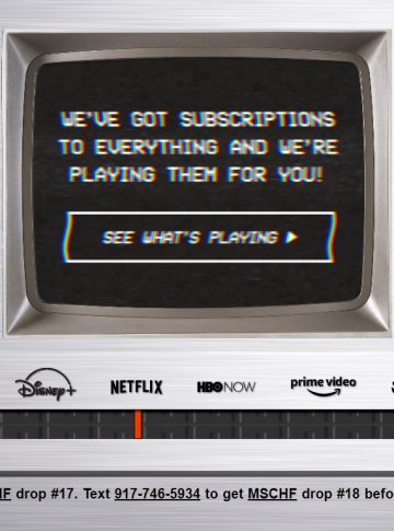 Esta constatação levou a MSCHF, empresa especializada em ações virais, a lançar na rede um novo stream pirata cujo propósito é justamente de devolver ao público esta casualidade. Intitulado All The Streams, o site tem a aparência de um televisor antigo e permite que o usuário alterne entre seis canais distintos – Hulu, Disney+, Netflix, HBO Now, Amazon Prime Video e Showtime – que transmitem conteúdos presentes nestas plataformas em caráter aleatório. Assim, se você selecionar por exemplo o Disney+, você vai cair em algum filme já na metade como “Monstros S.A.” (incluindo aqui no Brasil, onde a plataforma não está disponível); se a escolha for o Hulu, é possível se deparar com um episódio de “The Office” em andamento, e por aí vai.