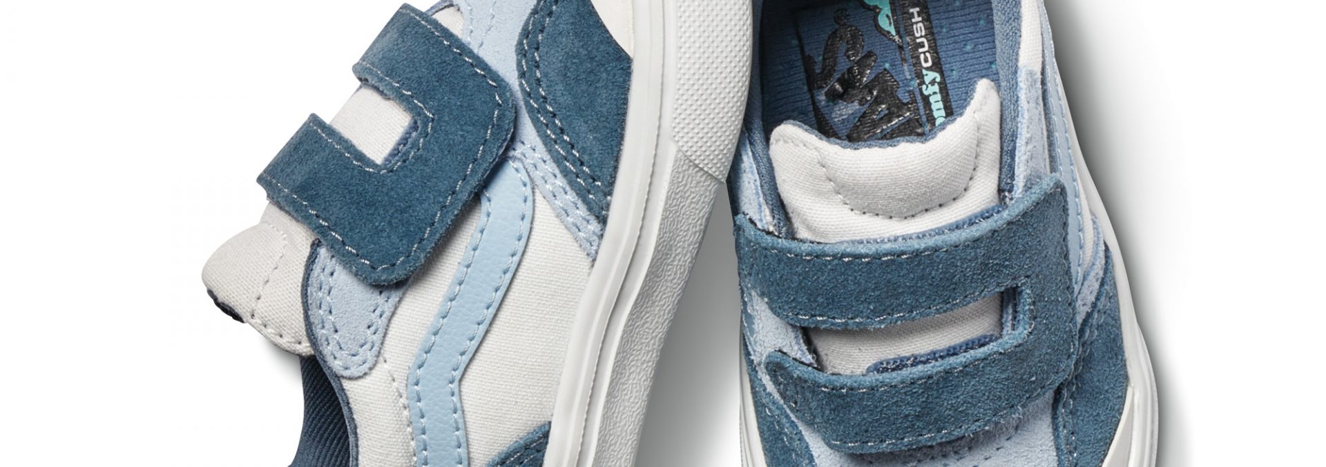 Fechando o oferecimento de calçados e exclusivo para crianças e bebês, a coleção ainda apresenta o ComfyCush New Skool V, apresentado em cores calmas e com tiras de velcro para facilitar o processo de vestimenta.
