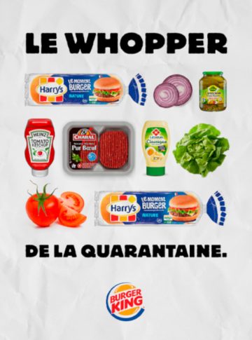 Criada em parceria com a agência francesa Buzzman, a ação orienta quais ingredientes usar em seu “Le Whopper de la quarantine”, embora falhe ao não fornecer as instruções em texto sobre como realmente prepará-lo.