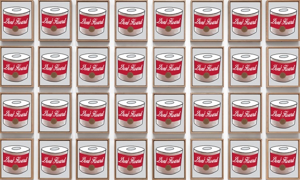As latas de sopa Campbell, de Warhol por exemplo, aparecem agora com a etiqueta “Don’t Hoard” (“não acumule”) para representar o pedido para que as pessoas não estoquem comida em casa.