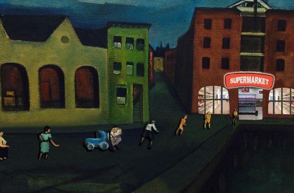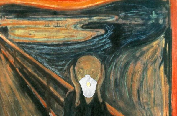 Na mesma linha, as docas de De Martini no domingo retratam um bairro vazio, com apenas uma longa fila de clientes indo em direção a um supermercado. Ou ainda o clássico personagem de “O Grito”, de Edvard Munch, adaptado com uma máscara de proteção;