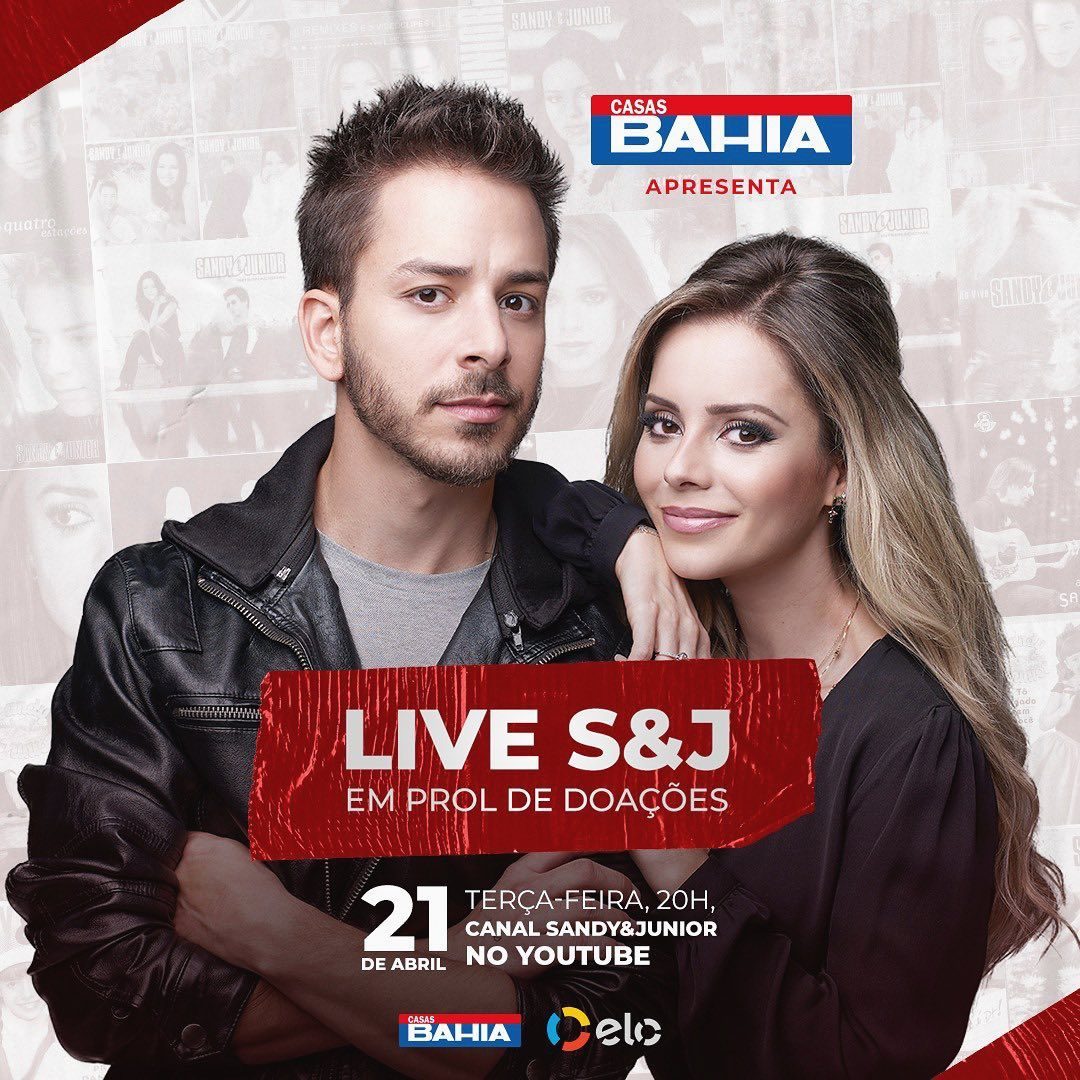 A dupla Sandy & Junior anunciou que realizará uma live, que além de alegrar os fãs também arrecadará doações para o projeto “Fome de Música”. O evento online é realizado em parceria com as Casas Bahia, e acontecerá na próxima terça-feira, 21/04, às 20h, no canal da dupla no YouTube.
