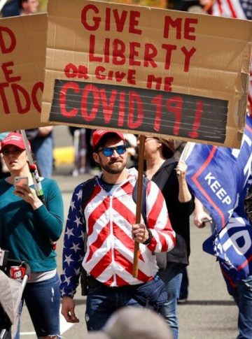 Protestos contra o isolamento social e a manutenção da quarentena têm sido vistos com frequência nos Estados Unidos, especialmente incentivados pelo presidente Donald Trump, que chegou a tweetar um pedido para “liberar” Minnesota, Michigan e Virgínia na semana passada. No Brasil não é diferente, com protestos e carreatas realizadas em diferentes cidades do país, a fim de pedir a volta das atividades comerciais e o fim do distanciamento social (entre outras coisas), também com o incentivo do presidente Jair Bolsonaro.