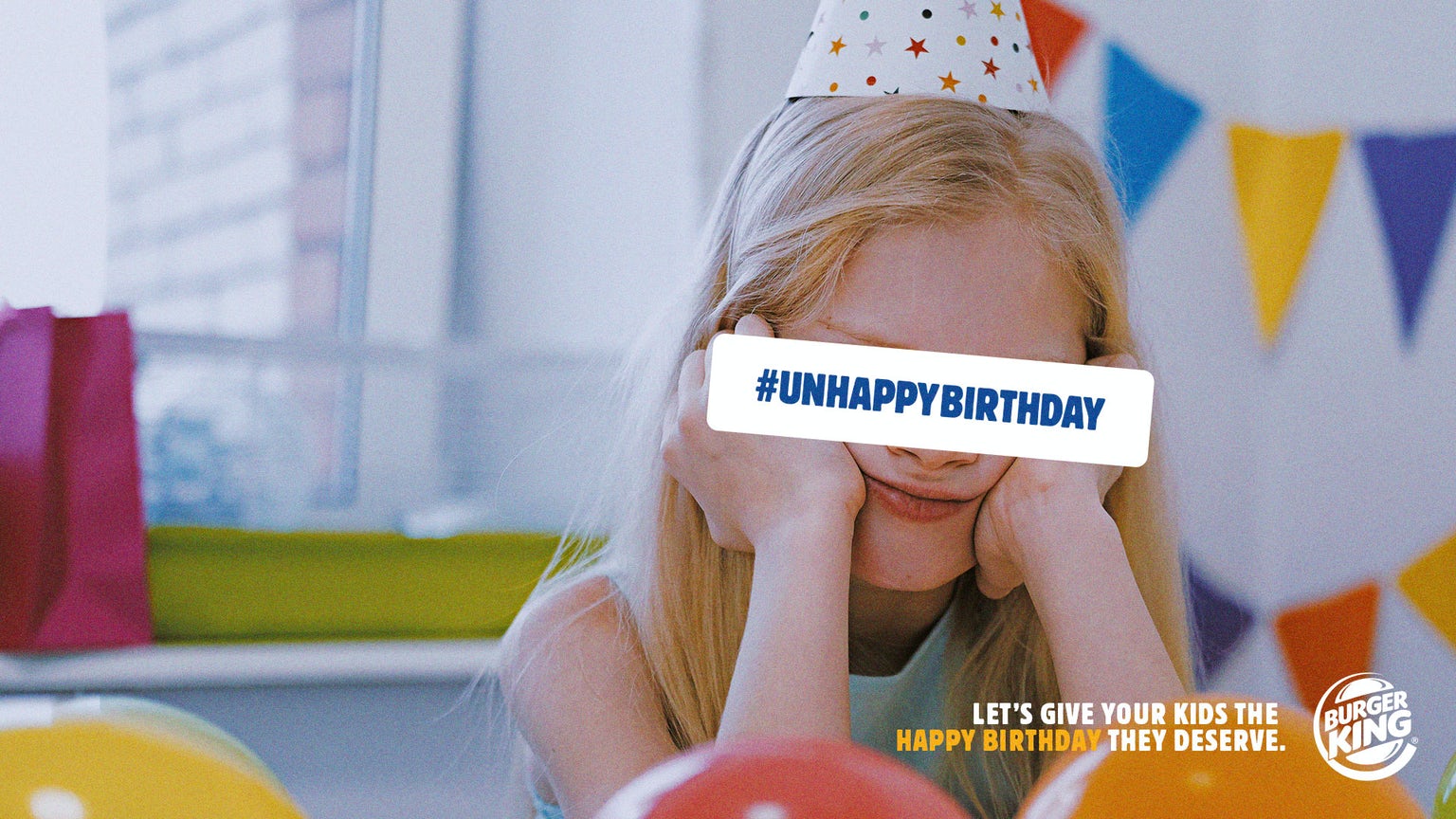 Além da brincadeira, a campanha ainda contou com o comercial de 30 segundos acima, que anuncia o “concurso” com imagens de várias crianças tristes em meio a itens típicos das festinhas (incluindo bolos e presentes), e duas artes para o meio digital abaixo.