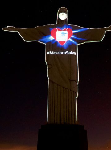 No último domingo, 03/05, uma máscara cobriu o nariz e a boca do maior cartão-postal do Brasil: o Cristo Redentor. A ação é parte da iniciativa “Todos Pela Saúde”, aliança de especialistas criada com o objetivo de combater o novo coronavírus e seus efeitos sobre a sociedade brasileira.