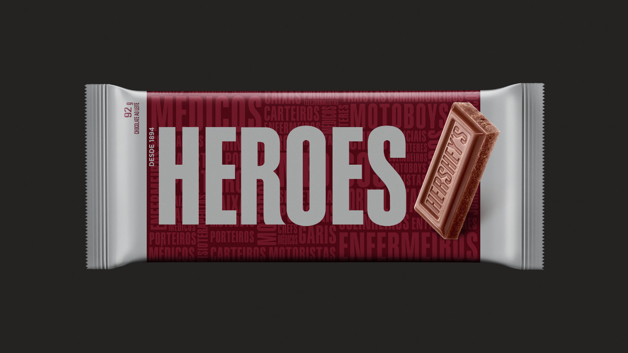 Em iniciativa criada pela agência BETC/Havas, a Hershey’s lança uma edição especial das embalagens de suas barras de chocolate ao leite, que agora estampam a palavra HEROES (heróis, em inglês) no lugar do nome da marca. A ação é uma forma da empresa reconhecer e homenagear o trabalho dos agentes de saúde que estão envolvidos na luta diária contra a Covid-19.