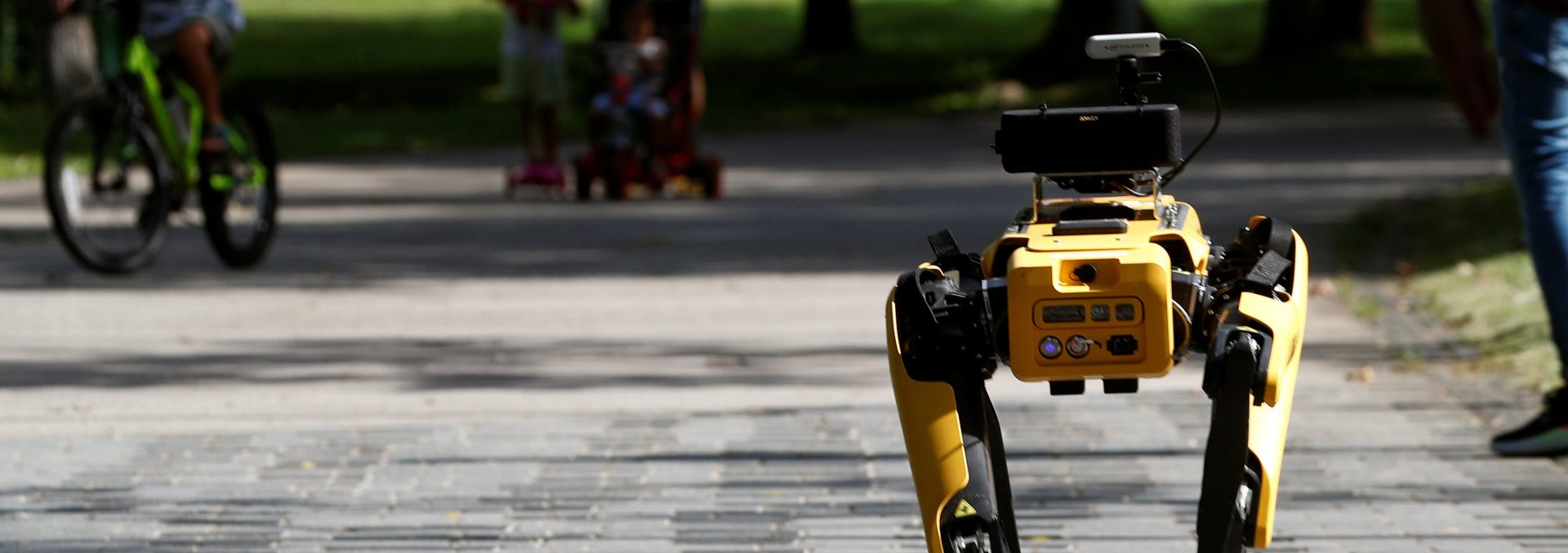 Em Singapura, cão robô é usado para garantir que pessoas mantenham o distanciamento social