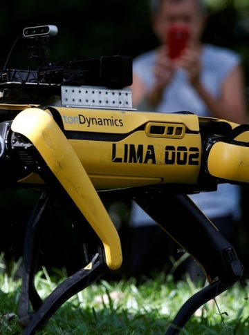 O robô criado pela Boston Dynamics e conhecido como Spot foi colocado no parque Bishan-Ang Mo Kio, e ao contrário das figuras semelhantes presentes no episódio “Metalhead”, da quarta temporada de “Black Mirror”, o cão robô não sai caçando ninguém e apenas transmite uma mensagem para lembrar as pessoas de ficarem longe umas das outras, ressaltando que a Covid-19 representa uma ameaça muito séria à saúde humana – e é interessante observar a mensagem quase como um “vocês que lutem” vindo de um robô.