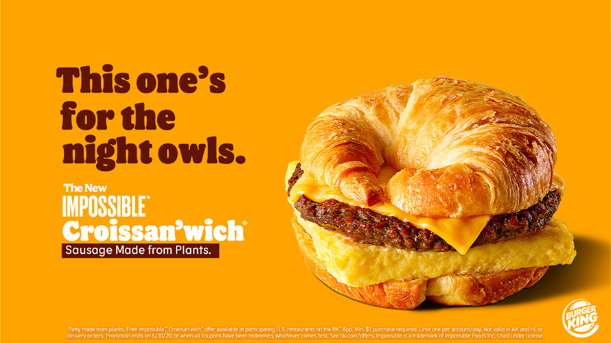 O lanche, que como bem diz o nome é um sanduíche com croissants de fatias de pão, foi anunciado nesta segunda (15) pelo Burger King como novo item do menu da marca em todo o território estadunidense e um novo capítulo da parceria com a Impossible Foods, que cuida da fórmula e produção da salsicha vegana no centro das atenções. A opção será lançada em uma nova campanha direcionada a “refeições noturnas” nos EUA, mas a empresa vai buscar situar o produto como uma comida do horário de café da manhã da rede por conta da combinação de ovos, queijo e a própria salsicha que formam o sanduíche. A rede também pretende distribuir cem mil Croissan’wichs de maneira gratuita a partir de seu aplicativo oficial.