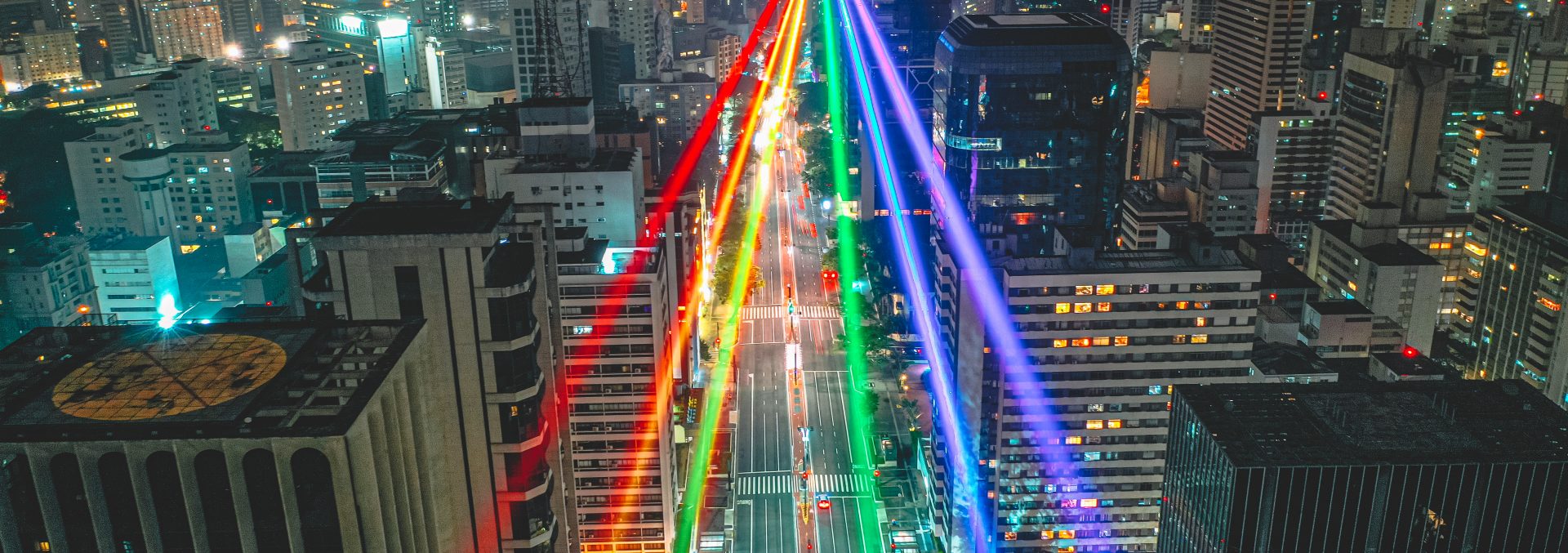 A obra, apresentada pela primeira vez no Brasil, com apoio da Secretaria Municipal Cultural, emitiu raios em 7 cores diferentes e iluminou o céu de São Paulo, transformando o cartão postal da cidade em um grande arco-íris, com visibilidade de até 60 km de distância.