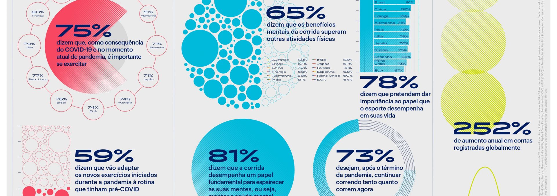 O estudo também relatou um aumento global de 62% pessoas saindo para uma corrida semanal. Comparado ao mesmo período do ano passado, houve um aumento de 47,3% (globalmente) no número de pessoas correndo.