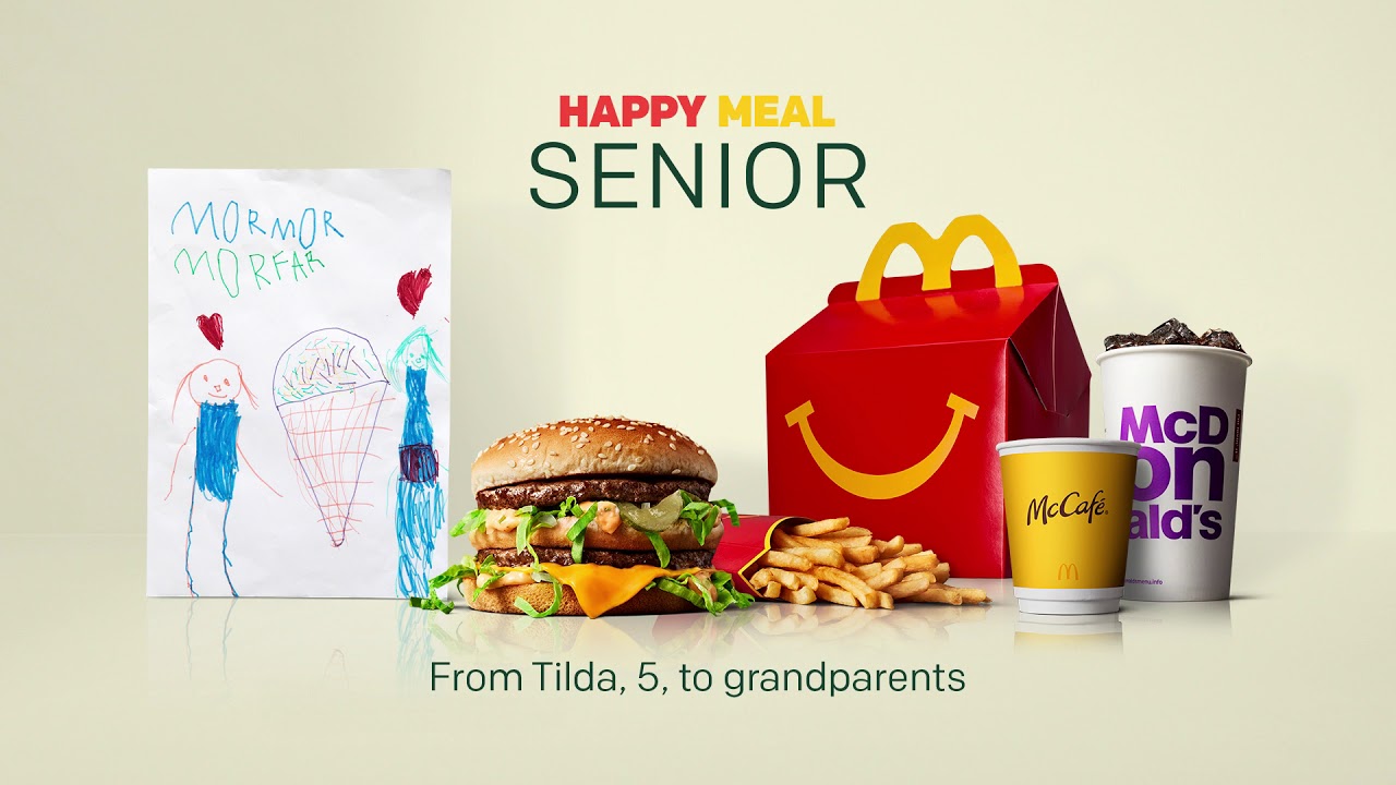 A iniciativa, realizada em parceria com a agência Nord DDB, de Estocolmo, convidou algumas famílias a surpreenderem seus parentes mais velhos com o “Happy MEal Senior” durante um fim de semana. O combo chegou com as opções favoritas dos avós, juntamente com uma doce saudação escrita ou ilustrada por seus netos.