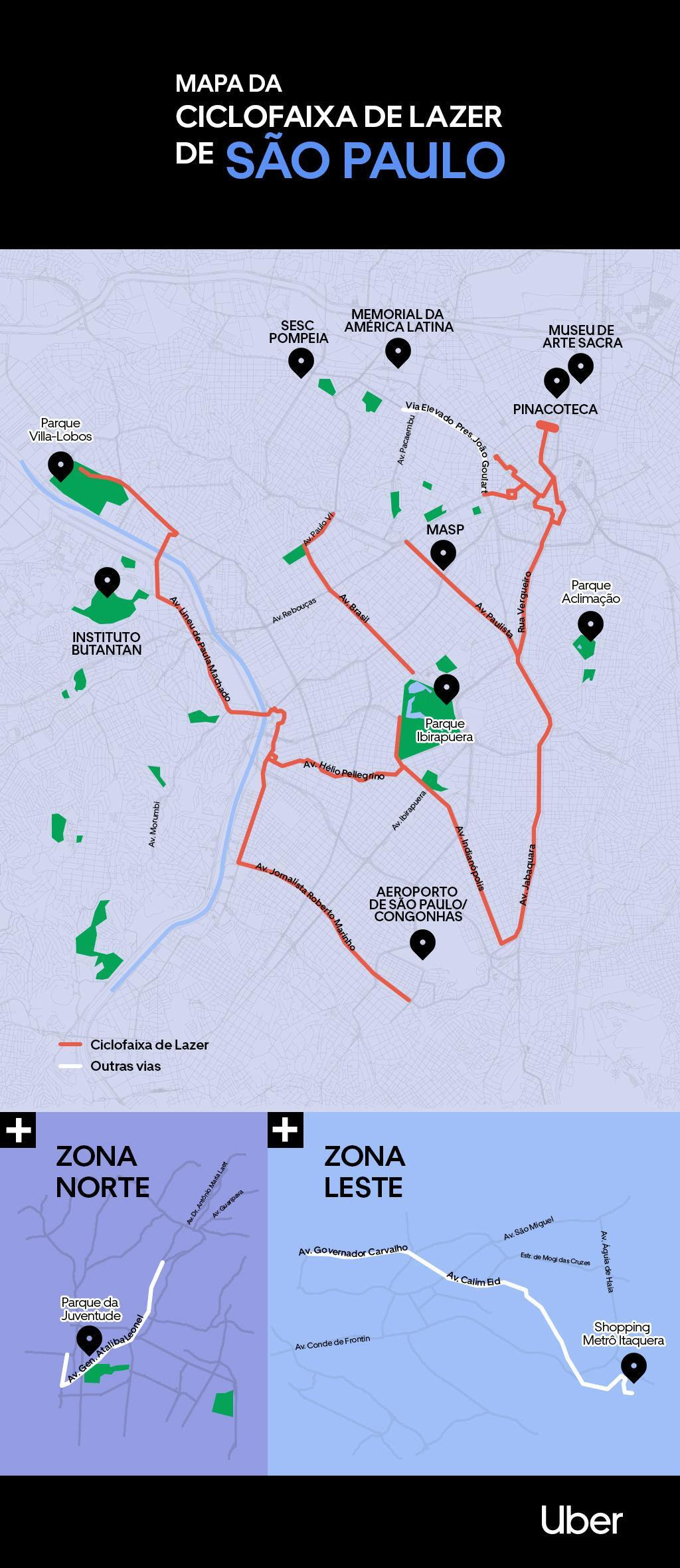 Sob o patrocínio da Uber, a “Ciclofaixa de Lazer” voltará a operar nos mesmos trechos e horários de antes. A empresa também oferecerá aos usuários todas as condições de segurança exigidas pelo Poder Público e a sinalização será complementada com mensagens de prevenção ao novo coronavírus.