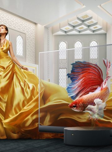 Com 55 polegadas, a TV transparente não tem um painel traseiro, como todos os aparelhos que conhecemos. Assim, quando está desligada ela parece um vidro transparente. Quando ligada, a TV transmite imagens que parecem estar suspensas no ar através do display autoluminoso transparente de ponta a ponta.