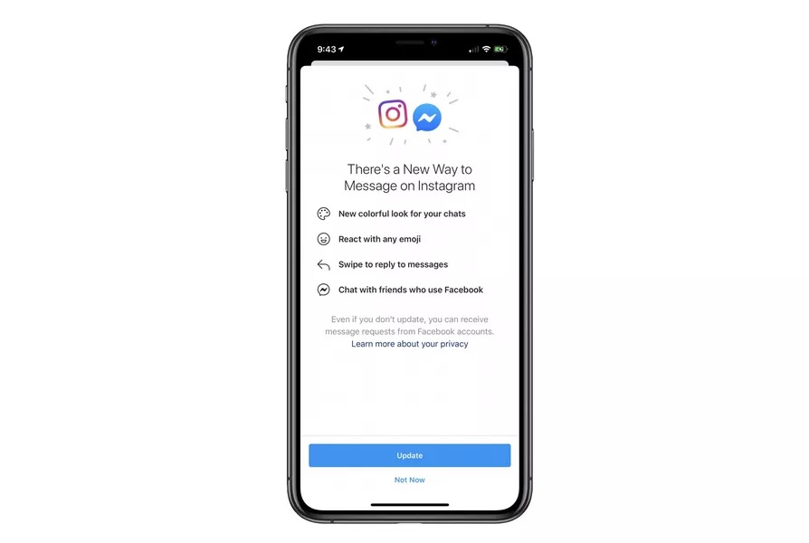 O Facebook começou a testar na última sexta (14) a fusão entre as conversas do Instagram com as do Facebook Messenger, passo que pode ser decisivo na promessa de integração entre plataformas que Mark Zuckerberg fez no início do ano passado. A companhia disponibilizou a diversos usuários uma notificação que permite juntar em uma página os chats do Messenger com as mensagens diretas do Instagram.
