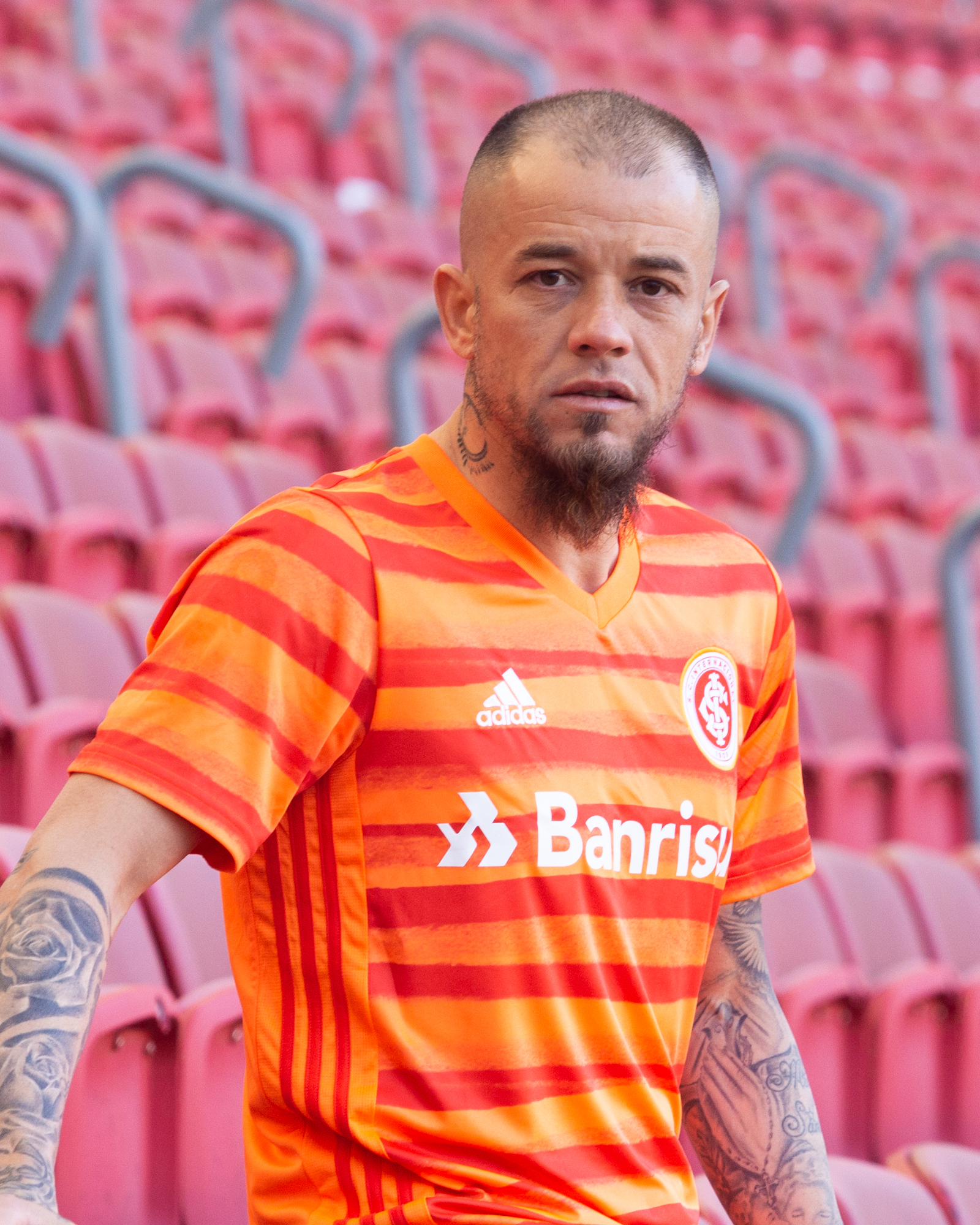 “Único. Iluminado”: o torcedor do Internacional terá uma versão inspirada no pôr do sol do Rio Guaíba, com elementos gráficos atuais em pinceladas vermelhas horizontais sobre o laranja que remetem ao movimento das águas. A gola V, em laranja, e o destaque no escudo bordado complementam o manto colorado. Os ídolos D’Alessandro e Edenilson e os torcedores colorados Amanda e Luciano revelam o uniforme.