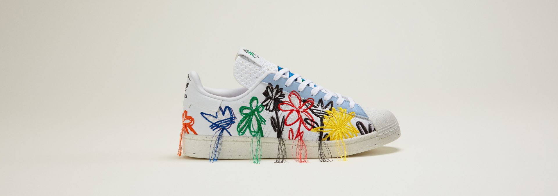 Para manter-se fiel ao objetivo de eliminar o desperdício plástico, a Adidas apresenta uma nova abordagem para o modelo Superstar, agora em parceria com o artista Sean Wotherspoon. A silhueta ganha uma versão de baixo impacto ambiental, inteiramente reciclável e confeccionada sem nenhum material de origem animal.