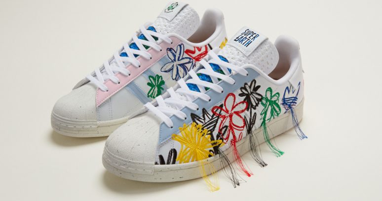 Inspirada no Y-3 Super Position, o SuperEarth Superstar apresenta desenhos florais elaborados por Wotherspoon, com linhas que ultrapassam o limite do sneaker. O emblema da iniciativa aparece na língua e no calcanhar do tênis, enquanto o solado traz um efeito de bricolagem em dois tons. Por último, a palmilha revestida a cortiça apresenta a marca SuperEarth.