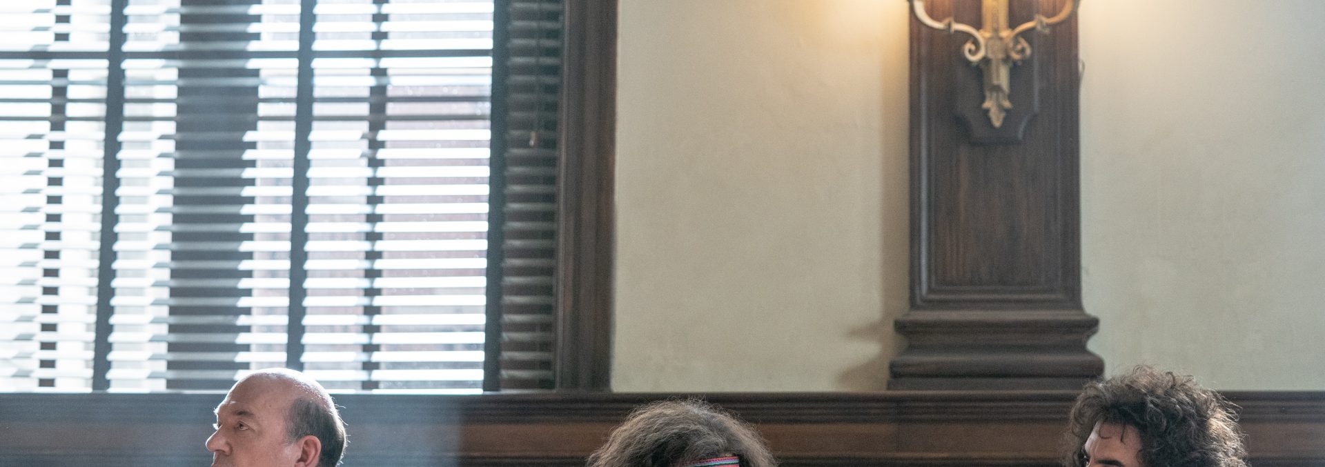 Há uma dificuldade imensa em transformar as ideias basilares do roteiro em algo minimamente cinematográfico, essencialmente imagético. O diretor parece ser daquele grupo de pessoas equivocadíssimas que acreditam que o roteiro seja a alma do filme – felizmente, não é. Por isso, o drama de “Os 7…” se resume às discussões de advogados, juízes e réus, mas jamais é transformado em forma. O longa não possui qualquer aspiração audiovisual. Na maior parte o tempo, falta qualquer olhar que faça com que o longa pareça algo além de uma série televisiva construída apenas por planos e contraplanos.