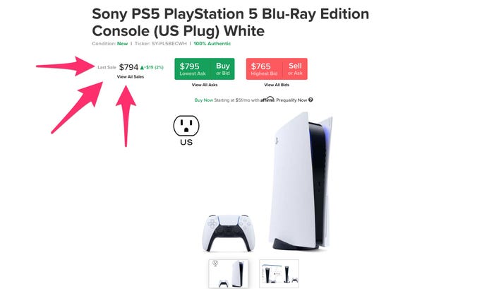 Segundo o Business Insider, os consoles, que custam US$ 400 na versão exclusivamente digital e US$ 500 na versão com leitor de disco, já estão sendo anunciados para revenda por US$ 800. As pré-vendas já foram esgotadas há meses e, como dito, as lojas físicas não oferecem o console no momento. Agora, a única opção para comprar um PlayStation 5 é a revenda de terceiros em lojas como o eBay.