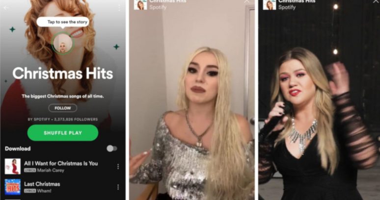 O Spotify está testando um novo recurso bem semelhantes aos stories que já conhecemos de outras redes sociais como Instagram e Snapchat. A sequência de vídeos aparece em algumas playlists especiais, como a s Christmas Hits, que inclui artistas como Ariana Grande, Kelly Clarkson, Pentatonix e, claro, Mariah Carey.