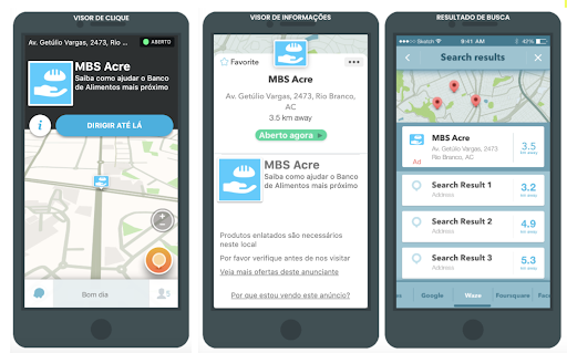 A partir desta semana, os usuários do Waze no Brasil, Argentina, Cingapura, Colômbia, Guatemala, Israel e México poderão identificar os pins azuis no mapa da plataforma que direcionam aos bancos de alimentos mais próximos que estão precisando de doações. Essas informações ajudarão os motoristas do app em todo o território nacional a navegar facilmente até os bancos de alimentos para doar os itens de maior necessidade, e ajudar a atender as carências mais urgentes e críticas das famílias que lutam contra a insegurança alimentar.