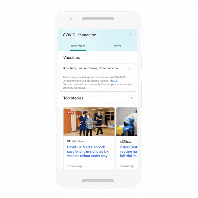Os painéis incluem informações sobre cada vacina individual e têm como objetivo abordar a desinformação e fornecer orientações sobre como, quando e onde as pessoas podem receber as vacinas. O Google usou um recurso semelhante para compartilhar informações reais sobre a Covid-19 no início da pandemia.