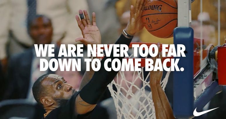 Em primeiro lugar aparece "Never Too Far Down / You Can’t Stop Us", da Nike, ilustrando a resiliência por meio das histórias do retorno de estrelas como Serena Williams e Tiger Woods.