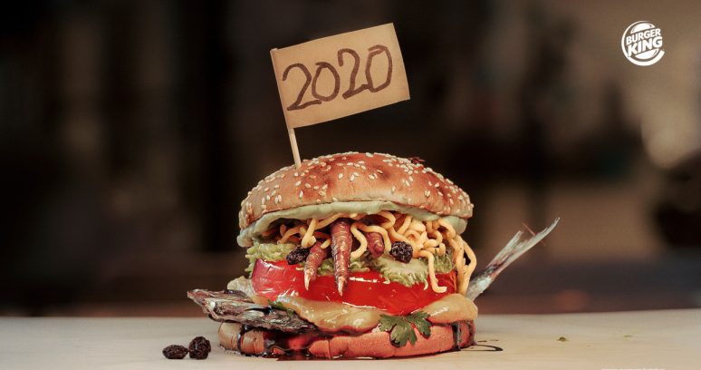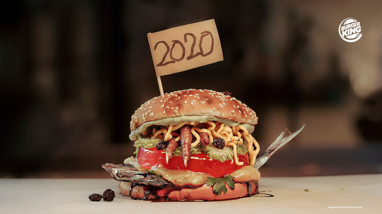Se 2020 fosse um sanduíche, ele provavelmente seria composto por ingredientes um tanto quanto diferentes. É com esse mote que o Burger King faz o seu último lançamento do ano, que representa todas as emoções e sensações que 2020 trouxe às pessoas. Pão queimado, miojo, uva passa, jiló, sardinha, pé de galinha, jaca, doce de leite e gelatina de tutti-frutti são os itens combinados para essa inovação – que ninguém vai querer repetir.