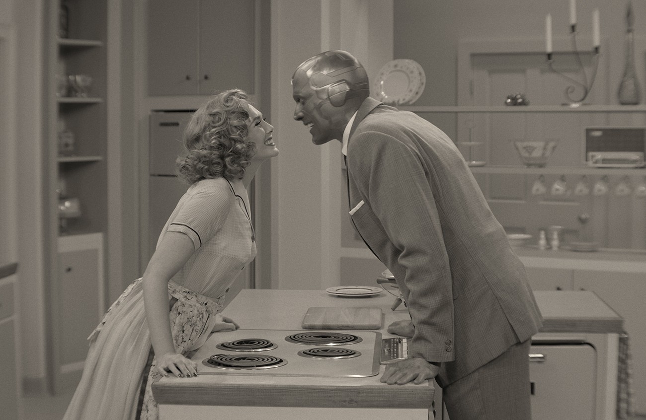 É proposital e talvez um tanto autocongratulatório da parte do Marvel Studios que seja “WandaVision” o projeto escolhido para marcar simultaneamente o retorno do estúdio ao calendário de lançamentos e a primeira incursão de seu universo de heróis pelo Disney+. Isso porque além da “grande homenagem à história da TV” a série focada nos personagens da Feiticeira Escarlate (Elizabeth Olsen) e do Visão (Paul Bettany) também envolve na premissa uma interação muito consciente de formatos já sedimentados no mainstream norte-americano, no caso o do acesso à sitcom pelas tramas rocambolescas dos filmes da marca – que por sua vez já há alguns “capítulos” se assemelham mais e mais ao estilo de uma grande novela bilionária.